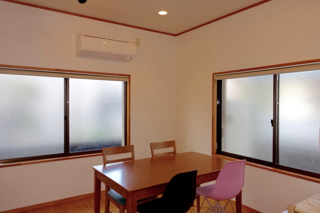 シェアハウスの中で最も明るい場所。キッチンと繋がっているので、住民はここで食事をすることが多いです。ちょっとしたお茶や作業にも使えるスペースです。