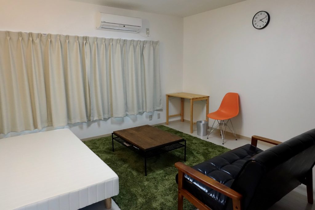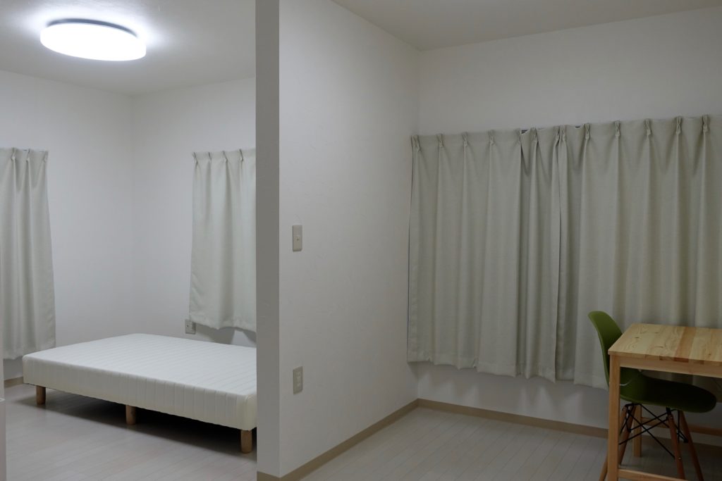 この部屋も2つの部屋を一つにDIYした部屋です。シェアハウスの中では一番広いお部屋になります。